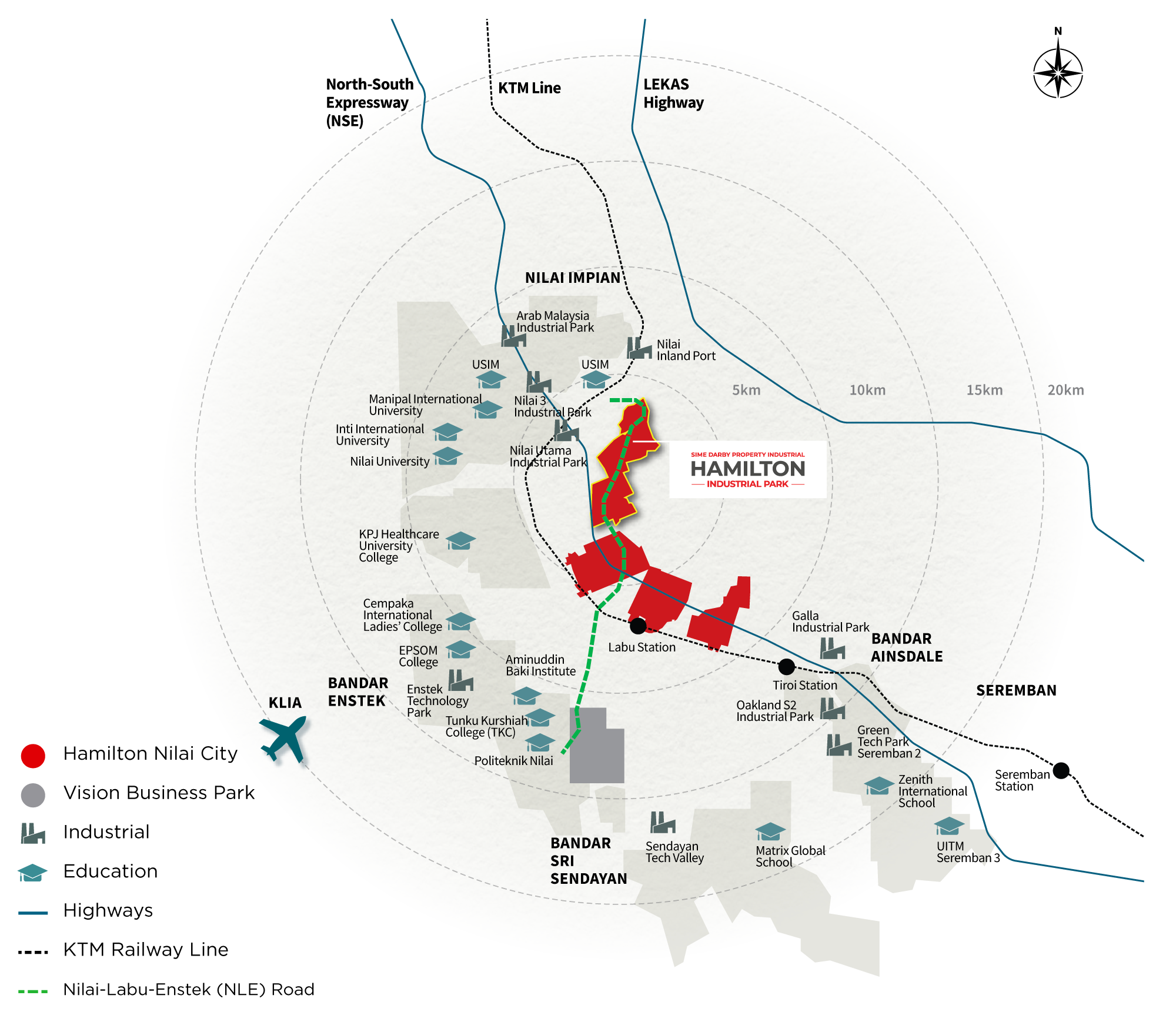 Spanning 2,838 acres along the North-South Expressway, Tech Park is divided into four key areas: Hamilton, New Labu, Labu, and Kirby—each dedicated to industrial innovation.